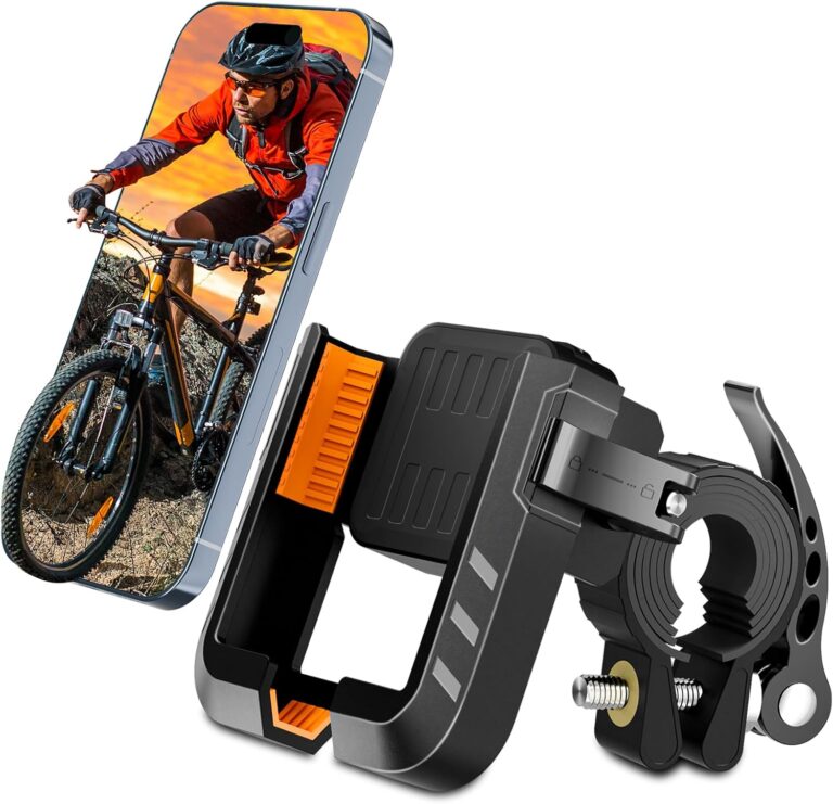 Bike Phone Holder,Motorcycle Phone Mount-Sturdy And Secure,One-Hand Operation,360°Rotating,Reduce Vibration,Compatible for All iphone Series and Other 4.7″- 6.8″ Cellphone.
