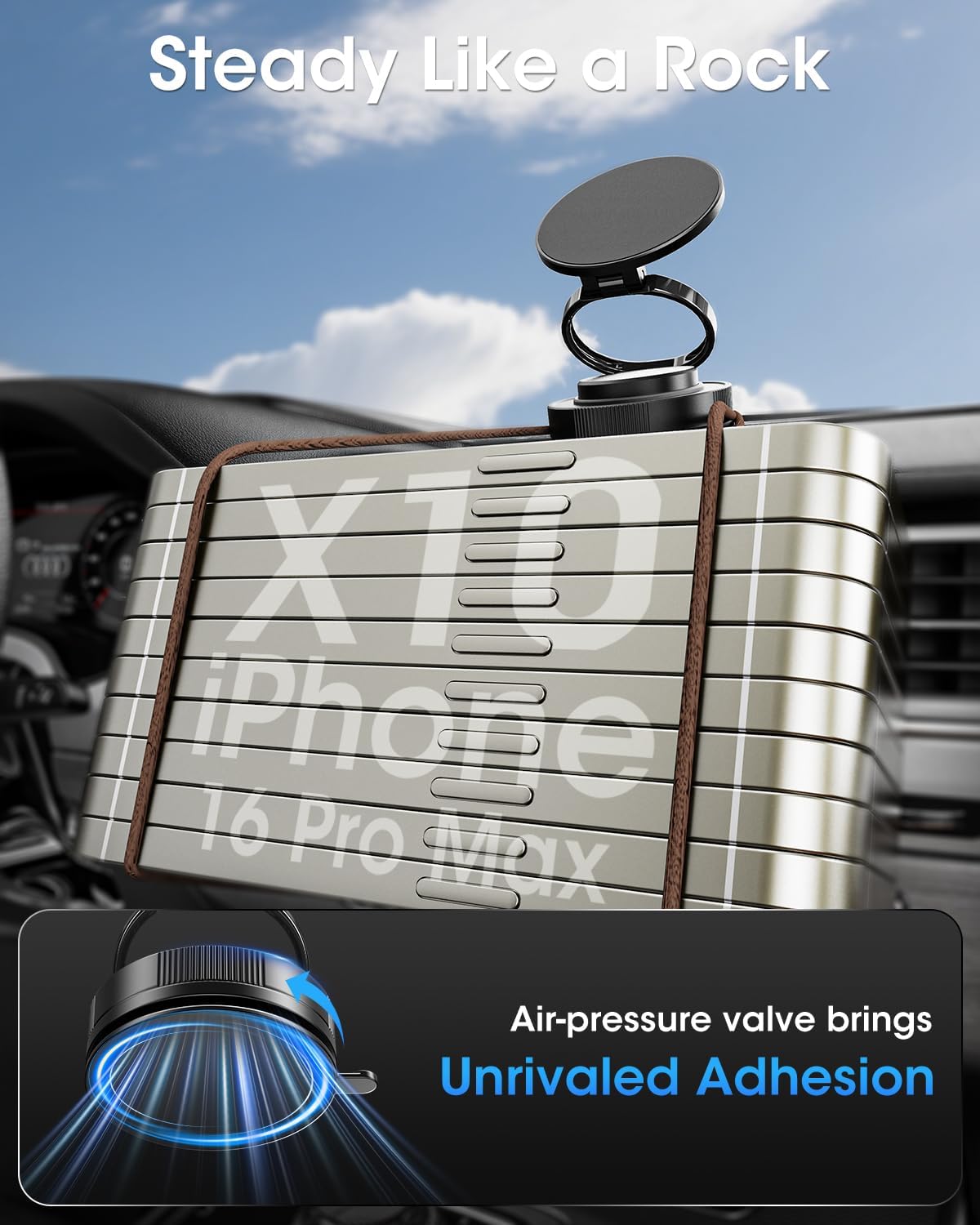 - ✅Strong Suction & Stable Connection: This car phone mount uses advanced rotating-lock vacuum suction, boosting suction by 50% compared to traditional press-on mounts.The high-strength silicone suction cup holds firm to any flat and smooth surface, and can be cleaned and regain most of its suction power, remaining stable and reliable for long-term use.