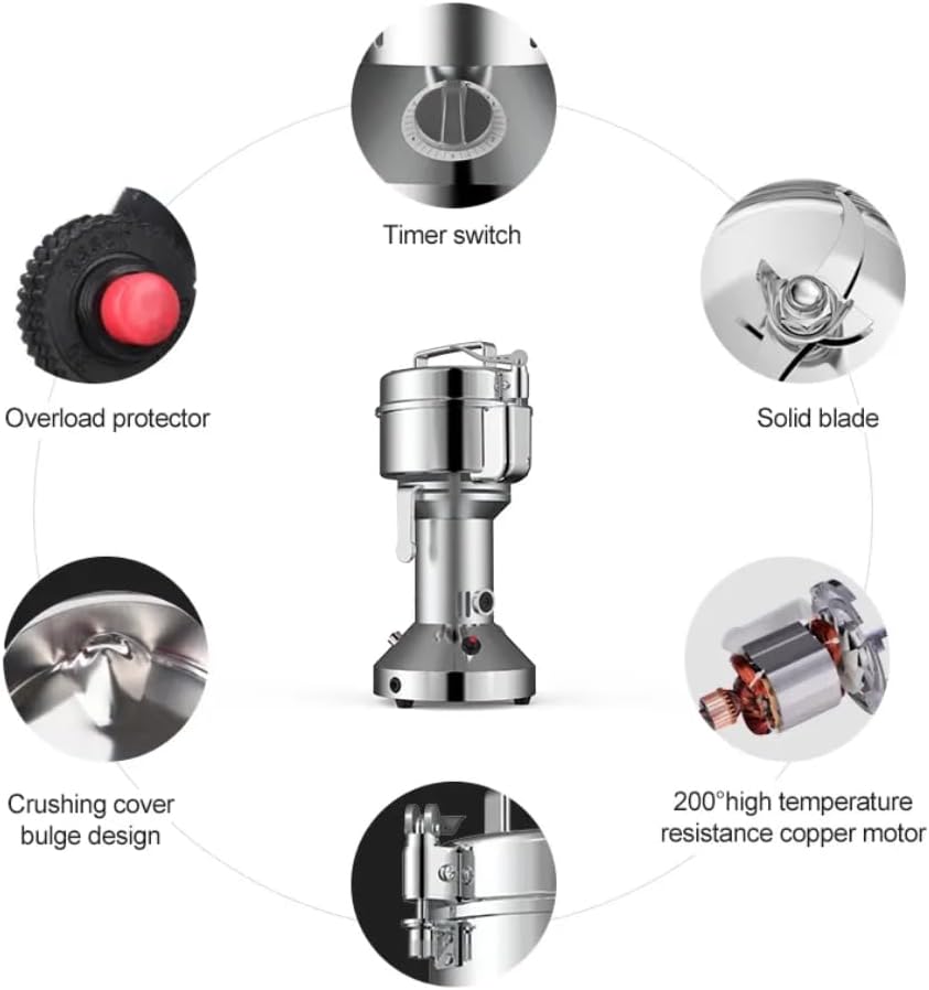 - [Versatile Grinding Capabilities]: Ideal for dry cereals, spices, herbs, and more, it supports a wide range of grinding applications, making it perfect for both commercial and home use.