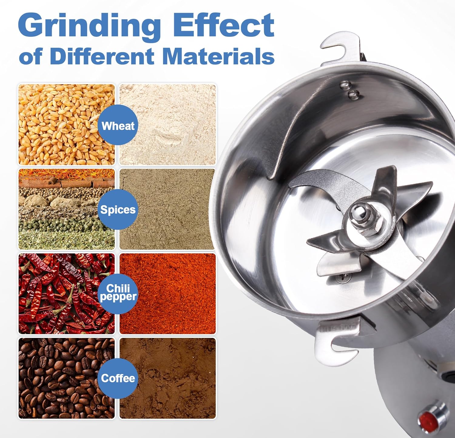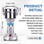 1000W Electric Grain Grinder Mill – High-Speed Stainless Steel Powder Machine for Spices, Coffee, Herbs & Grains – Heavy-Duty Commercial & Home Use, 150g Capacity