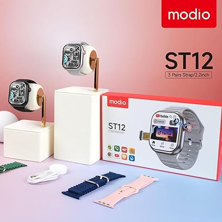 The ST12 Smartwatch offers a 2.2-inch vibrant display, 4G SIM support, and two-way calling. With features like waterproofing, heart rate monitoring, social media notifications, and advanced health tracking, it ensures a seamless smart experience. It includes 4GB RAM, 64GB storage, and a long-lasting 680mAh battery. Smartwatch with SIM Card. Smartwatch for Women. 4G Smartwatch. 2.2 Inch Smartwatch