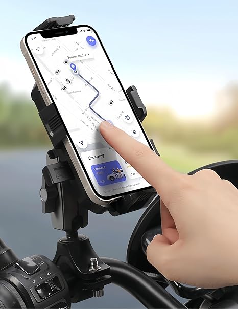 - One-Handed Operation: The motorcycle phone mount adopts a one-push automatic locking and quick-release design. You can insert or remove your phone with just one hand in one second, making it very convenient.