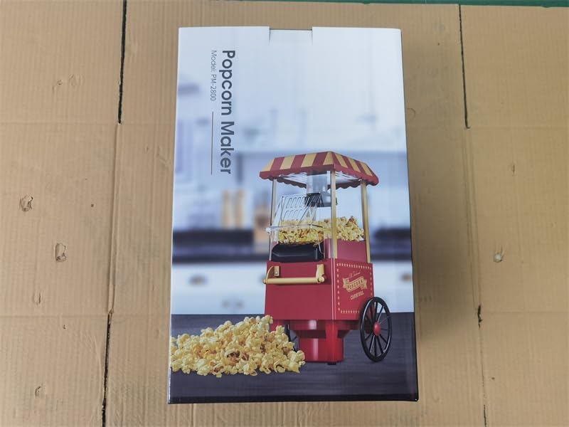 (1) This popcorn machine can produce crisp popcorn in 2 minutes without adding oil and sugar, and the explosion rate reaches 99%. Compared with the popcorn machine on the market, the waste of corn kernels has been minimized. The sugar-free and oil-free features enable pregnant women, the elderly and children to try this delicious snack without worrying about fat and health problems. (2) This hot-air popcorn machine has a retro appearance and a small cart design, which is more suitable for giving as a gift to friends or children. (3) Our goal is to provide you with the best quality products. If you have any questions about this machine or need help, our most professional customer service will be at your service at any time.