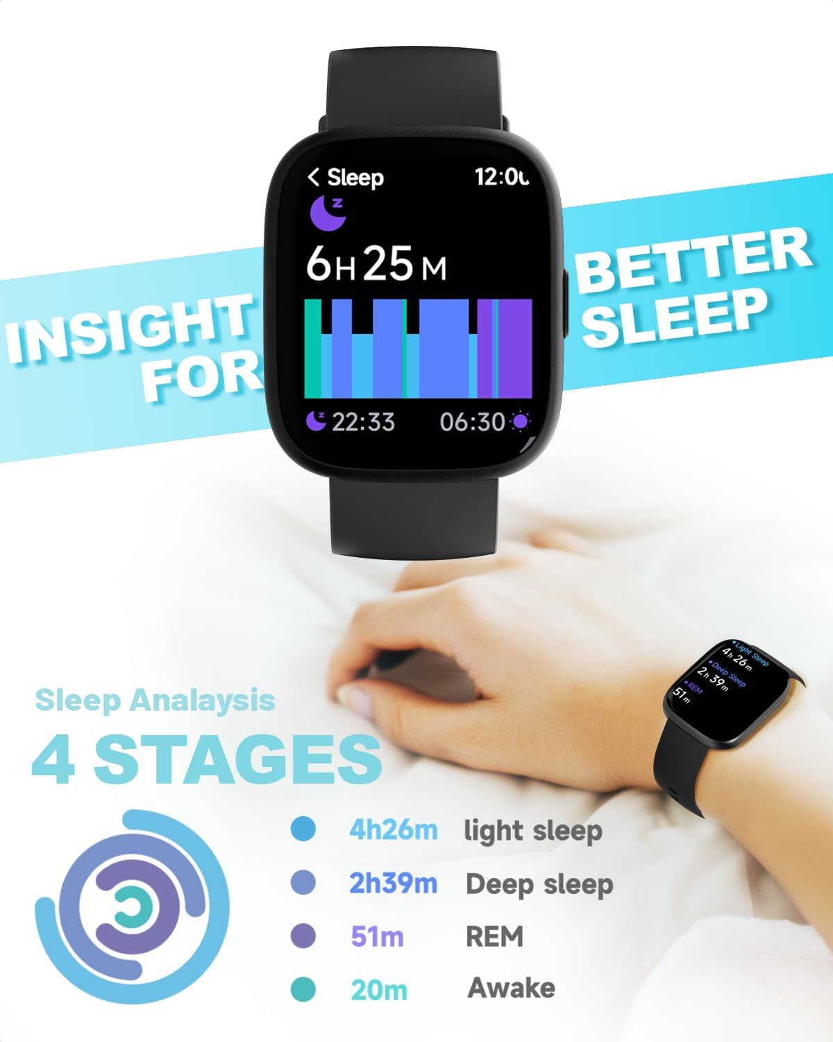 - Get a Better Sleep: This sleep tracker for men monitors REM, light, and deep sleep, sending data to the “VeryFit” app for personalized insights and tips. Improve your sleep habits and wake up refreshed. Please note that more than 3 hours of sleep is required to be recorded by the test. Long-term wear is recommended!