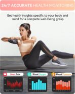 - All-day health tracking: Equipped with high-performance optical sensors, this android smart watch offers comprehensive health monitoring features, including continuous real-time heart rate tracking, blood oxygen (SpO2) measurement, and sleep monitoring (deep/light sleep). Additionally, fitness tracker watch for women men includes a sedentary reminder and female menstrual cycle tracking. All these features help you better understand your health status and make necessary adjustments.